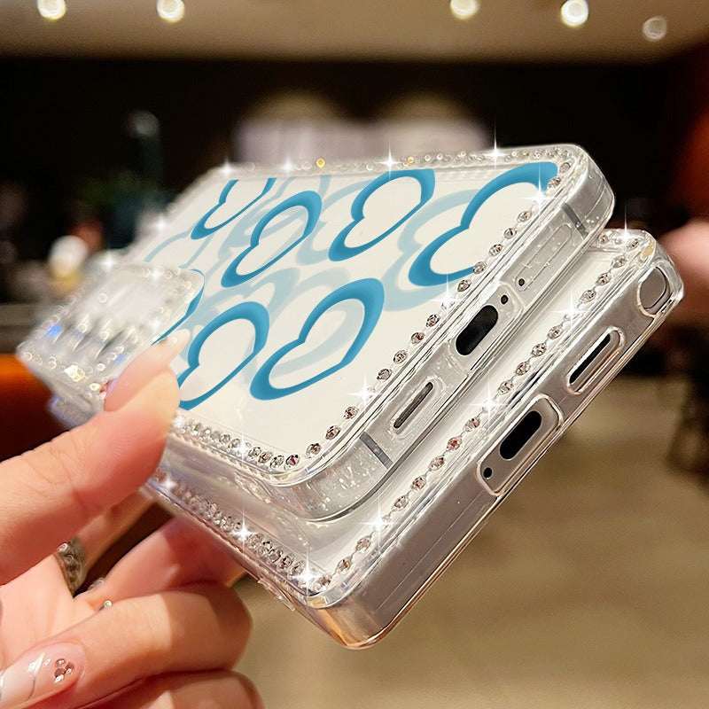 Celebrate love and elegance with the Samsung Painted Love Diamond Case, designed to add a romantic and luxurious touch to your S25 Ultra, S24 FE, A16, or A25. This case features a beautifully hand-painted love motif accented with glittering diamond-like elements, all encapsulated under a clear, durable silicone layer for a smooth, tactile feel. The transparent full-cover design showcases your phone’s original color while providing reliable protection against scratches, drops, and daily wear. Precision cutouts ensure easy access to ports, buttons, and cameras, and the flexible silicone material offers a snug fit without bulk. Perfect for those who appreciate artistry and sentiment, this case blends emotional design with everyday functionality.