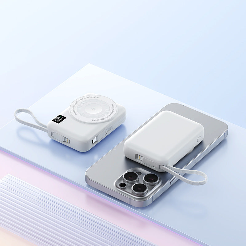 Stay fully charged on the go with this innovative and portable power bank. Featuring a powerful 20,000 mAh capacity, it offers both fast charging and a dedicated wireless charger for your watch, ensuring all your essential devices are ready when you are. The built-in cable adds to its convenience, while its compact, stylish design makes it the perfect accessory for a dynamic lifestyle. This power bank is your all-in-one solution for reliable, high-speed charging for both your smartphone and smartwatch.