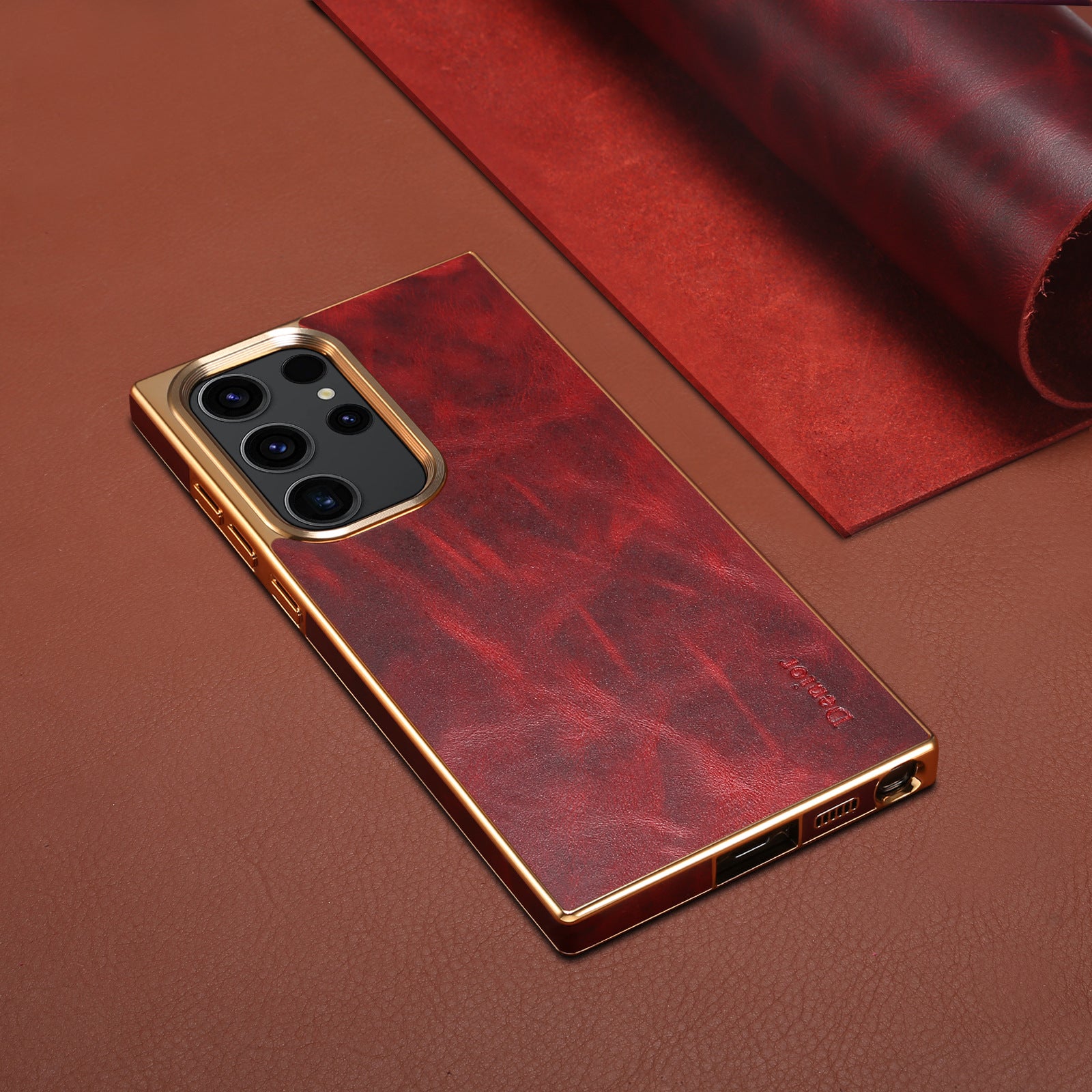 Designed with sophistication and comfort in mind, the Samsung Senior Elite Leather Case combines premium first-layer cowhide leather with thoughtful features for discerning users. This case offers a secure, comfortable grip and easy access to ports and buttons, making it ideal for senior users or those preferring refined simplicity. The genuine leather construction develops a beautiful patina over time, while providing durable protection against daily wear. Compatible with Samsung S25 Ultra, S24, and S23 Plus models, it features a slim profile that doesn't compromise on protection. The natural leather texture provides enhanced grip stability, reducing the risk of drops, while maintaining wireless charging compatibility for convenience.